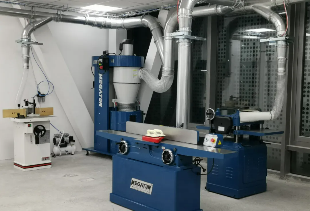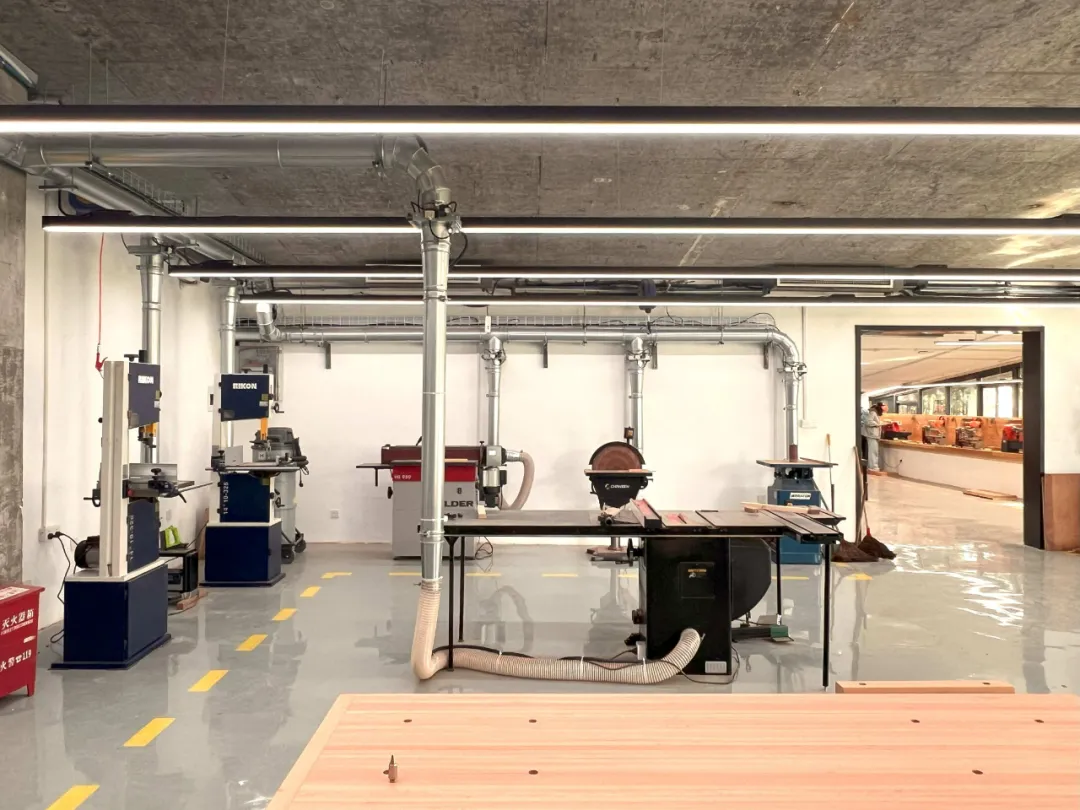 中央集尘系统,如旋风分离器或袋式过滤器,则处理高体积粉尘,适用于大型木工实训室;小型木工实训室可能更依赖移动中央集尘器(1-2.2KW),而大型设施需要中央系统(4KW以上)配备海帕(HEPA)过滤器以实现高效过滤或部署多台移动中央集尘器。空气过滤设备,如天花板悬挂式或移动式净化器,能去除悬浮粉尘,建议这些设备应提供每小时6-8次空气更换,并定期维护过滤器以避免压降和性能损失。这些工程措施不仅减少了健康风险,还改善了整体空气质量,使师生使用的木工实训室更符合标准,如允许暴露限值(PEL)在5毫克/立方米以内,否则长期暴露超过PEL可能导致呼吸系统疾病或癌症风险增加。