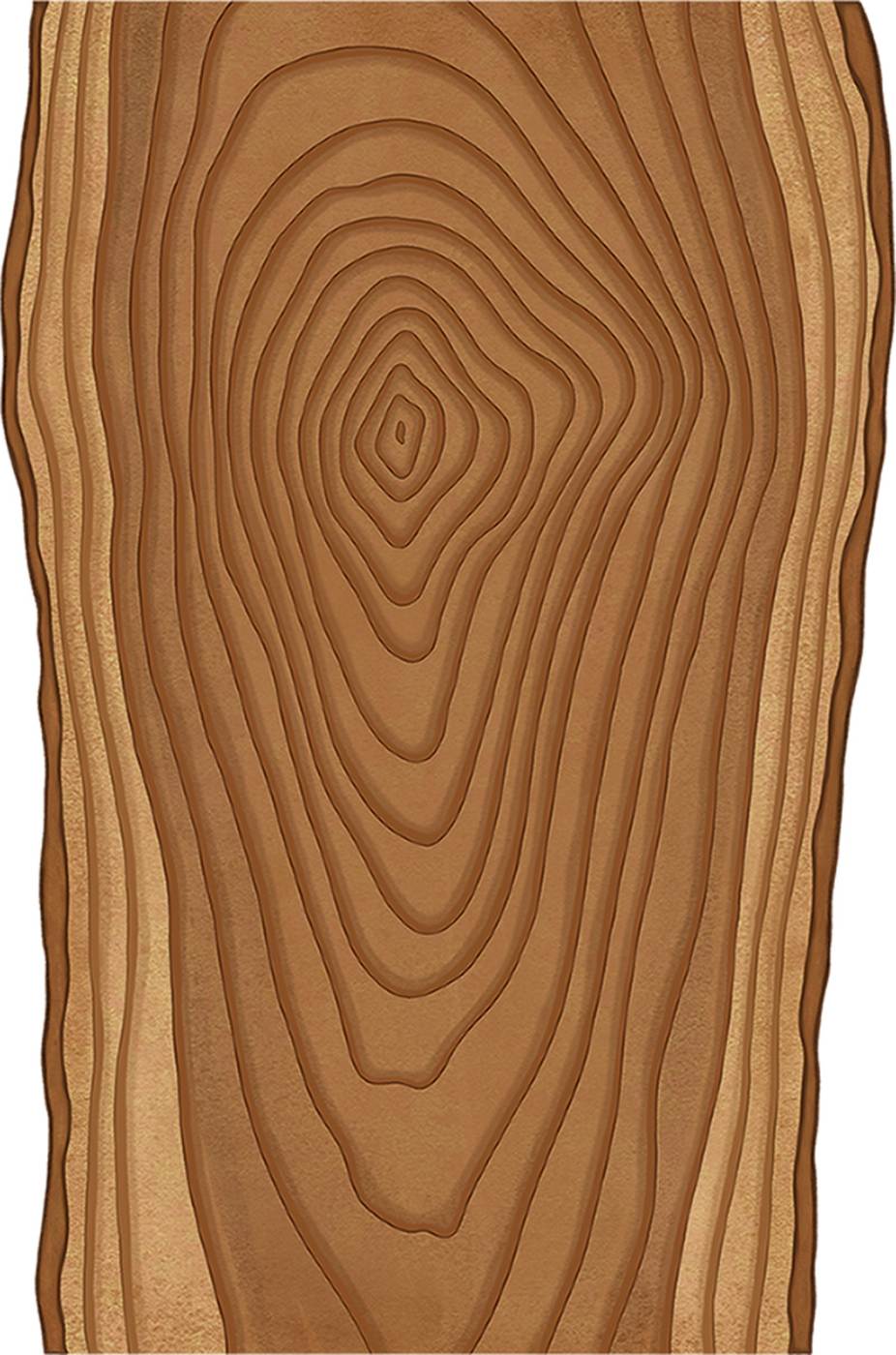 在木工中,我们通常关注的是边材、心材和年轮(这就是我们看到的“纹理图案”)。树木生长得越慢,年轮就越紧密。如果一棵树生长得快,它就会有宽大的生长轮和大量的边材。生长在山上或处于胁迫环境下的树木,其髓心会偏离中心。